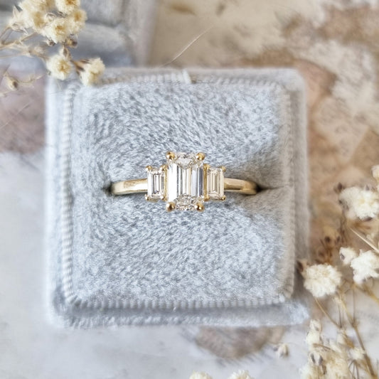 1.10 CT Emerald Three Stones CVD E/VS1 Diamond Engagement Ring