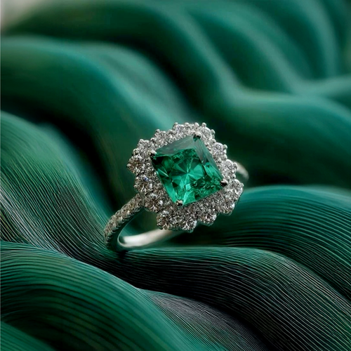 1.50 CT Emerald Halo CVD D/VS1 Diamond Engagement Ring