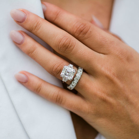 4.1 CT Asscher Three Stone Lab Grown Diamond Engagement Ring