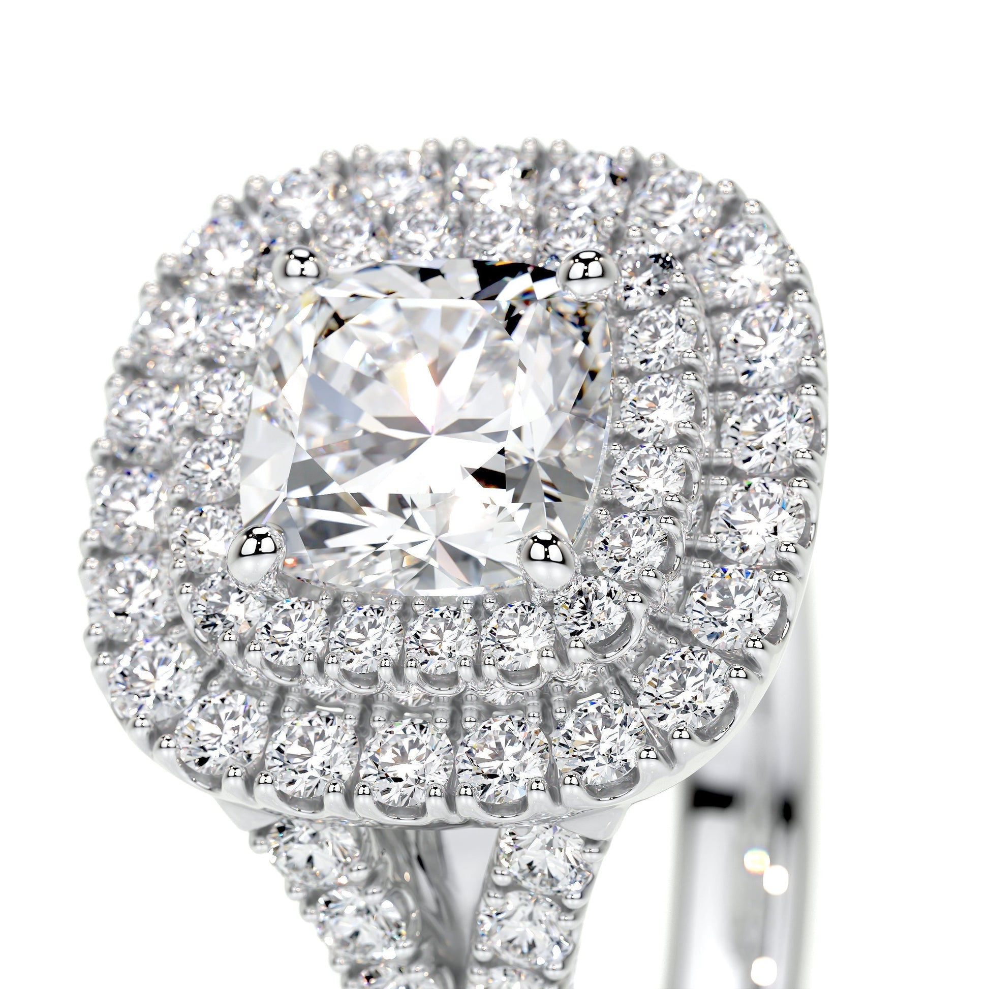 1.0 CT Cushion Double Halo CVD D/VS1 Diamond Engagement Ring