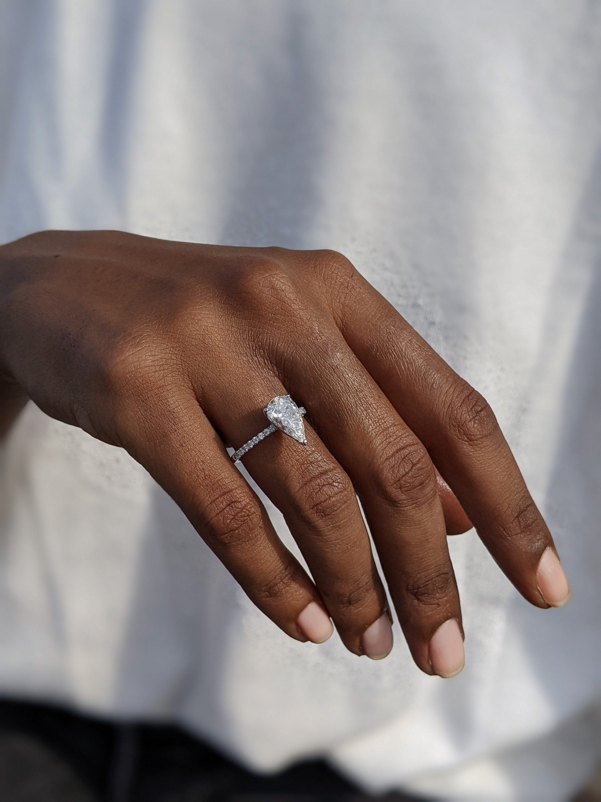 ✦ The Ring Shown in the Picture Holds a Beautiful 1.7 CT Pear G-Color, VS2-Clarity CVD Lab Grown Diamond.